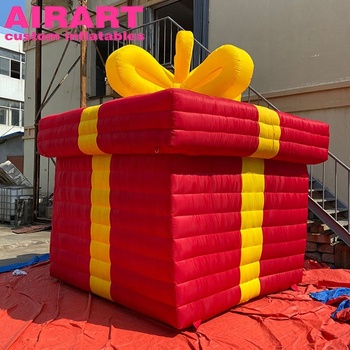 Balão inflável portátil do presente caixa do Natal com iluminação conduzida